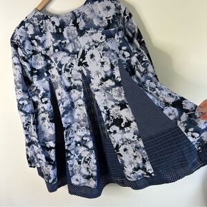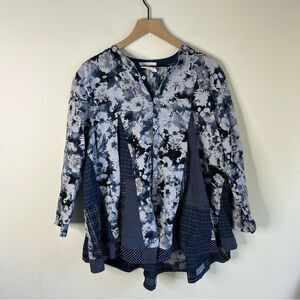 Textile hARvesT Floral Mixed Media Recycle Fabric Button-Up Shirt Large