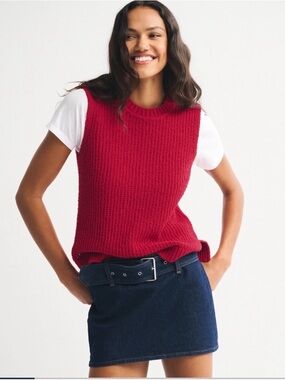 Body-skimming shell tank in our soft textural sweater-knit fabric, featuring a crew neckline, side-slit details at the hem, textural stitching details throughout and rib trims at the neckline and hem. Pairs perfect with your favorite mini skirt!