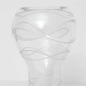 This beautiful crystal glass vase has deep incised and textural figure 8 lines