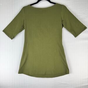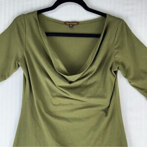 Texture Draped Cowl Neck Green Short Sleeve Blouse Size Small Organic Cotton
