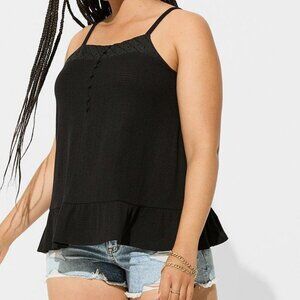 Texture Knit Woven Eyelet Square Neck Swing Tank