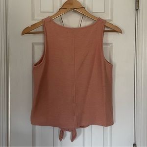 Madewell Texture & Thread Pink Button-Front Tie Tank Top Blouse with V Neckline. Size Small. 100% Cotton.