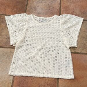 Texture & Thread Eyelet Flutter-Sleeve Top