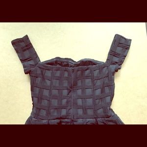 perfect for date night! bardot cut and thick fabric, solid black with checkered texture.