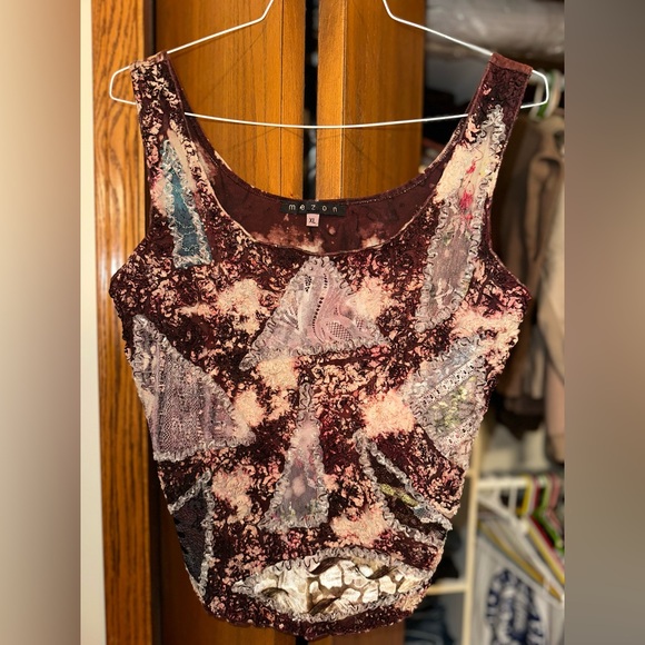 Textured Boho Tank. Sooo adorable but too short for my torso. Never worn. Was a gift from my ex-MIL. Lace inlay. Appliqué.
