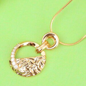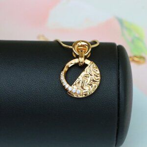 "Textured Circle Rose Gold Pendant with Crystals, XPPT1583