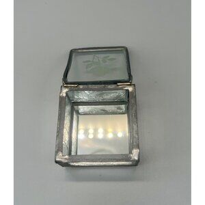Textured Clear Glass Jewelry Trinket Box Hinged Etched Rose Design 2.5" x 2.5"