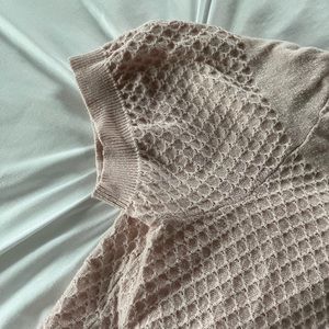 This shirt is so cute! Great condition. Features a textured material and fun sleeves! Don’t let the size tag fool you, this can fit a small, medium, or even a large! It’s here stretchy and comfortable.