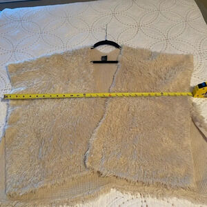 Cream “fur like” cardigan. Dimensions and fabric content in pictures (same item, different lighting)