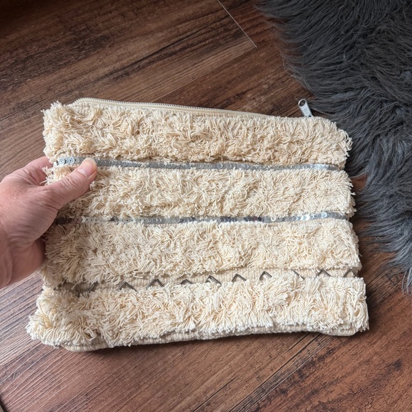 Stylish textured cream clutch with a unique design. Perfect for any occasion. From World Market. Like new condition.