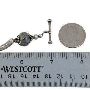 Sterling Silver Textured Curve Tube Green Glass Beaded Toggle Bracelet 7"