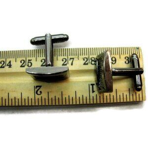 Unbranded's Textured Geometrical Cuff Links offer a distinctive style, featuring a rectangle silver tone with a bronze bullet design. The antique tone brass and black color combined with the metal material exudes a signature vintage appeal.