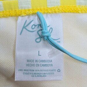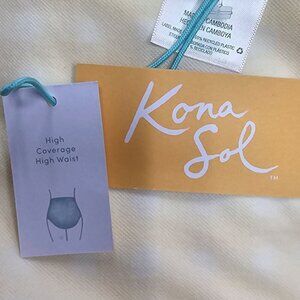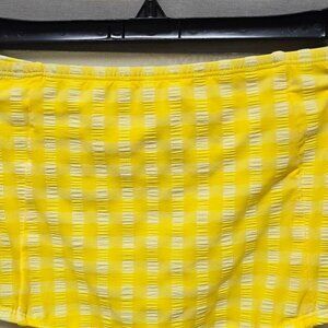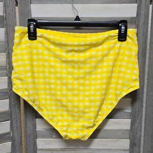 Dress up your beach-ready look with this Textured Gingham High-Waist High-Coverage Bikini Bottom from Kona Sol™. This bikini bottom is printed with a yellow and white gingham pattern, and it features a classic high-waisted design with ruched shirring across the front to create a flattering look. The stretchy fabric lends comfortable movement and a snug fit, while the fully-lined construction offers plenty of coverage for confident wear. Pair with a matching bikini top or with other bikini tops for endless styling options. Kona Sol™: Made for your day in the sun.