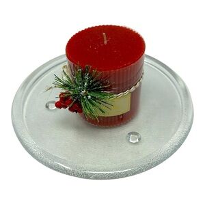 Textured Glass 8” Round Footed Candle Coaster