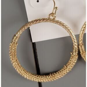 14th & Union gold tone large hoop earrings featuring a textured rope and mesh design. Lightweight with fish hook backs. Originally sold at Nordstrom Rack.