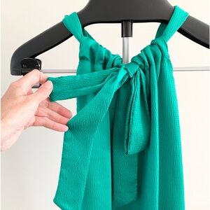Textured Green Satin Halter Top