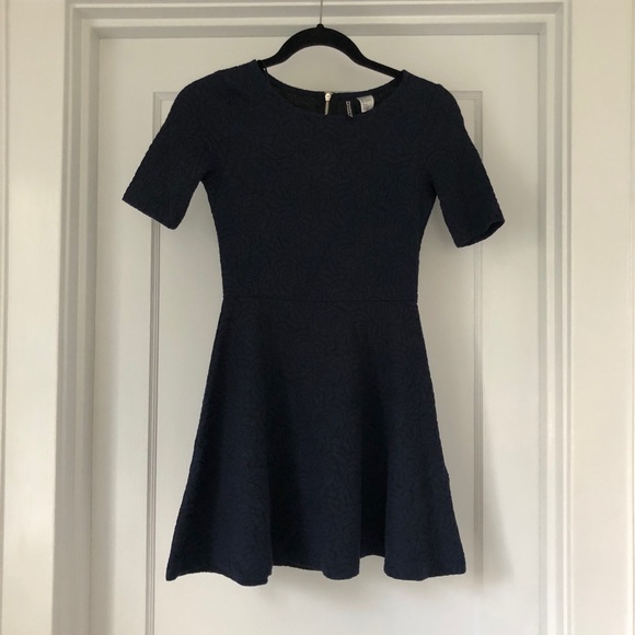 Gorgeous textured navy and black floral patterned dress. See close up for details.