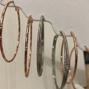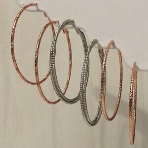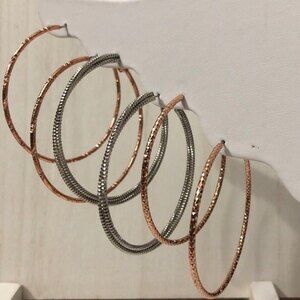 Textured Hoop Statement Earrings Silver & Gold Toned 3 Pair