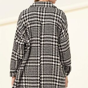 A timeless houndstooth pattern and cozy blend bring casual appeal to this stylish shirt-jacket that will complement your chic wardrobe.Overview* Front button closure.* Houndstooth Pattern.* Collar neck.* Long-sleeves.* Frayed hem.Fit & Sizing* Model is wearing a small.* Fit: True to size.* Fabric: Non-stretch.Fabric & Care* 100% Polyester.* Machine wash cold.* Do not bleach.* Tumble dry, low heat.* Iron low heat. ( MATCHING SHORTS SOLD SEPARATELY )