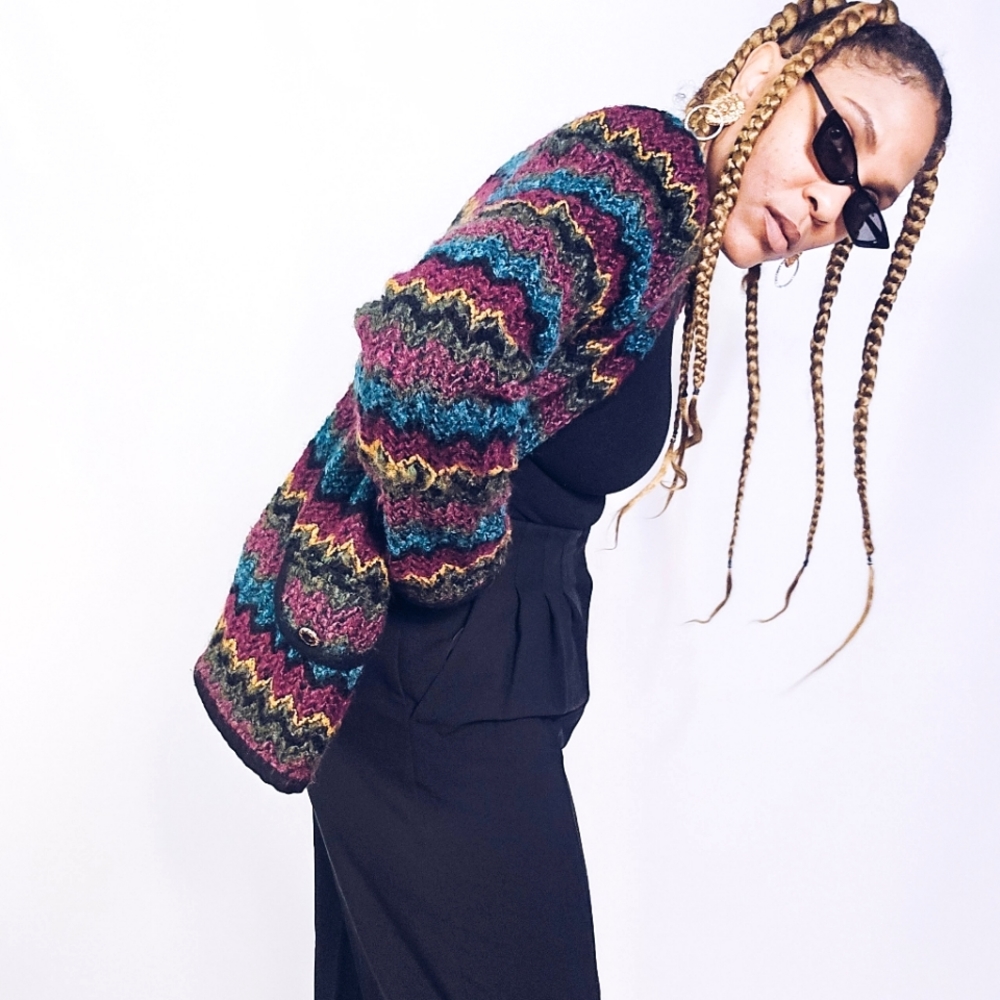 Koret vintage textured multicolored open front jacket. Lined.