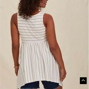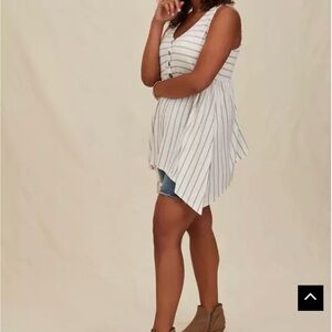 Elevate your style with this chic sleeveless top featuring a button-front design. The classic white and gray stripes add a touch of elegance to any outfit.