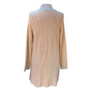 Textured Knit Open Front Cardigan Womens Size M Cozy Boho Duster Neutral Stripes