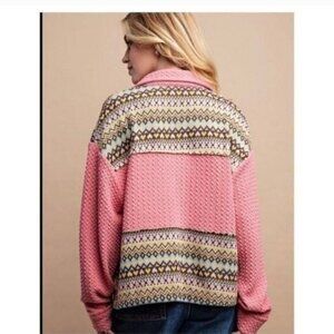 Textured Knit and Yarn Dye Pattern Mixed Jacket-NEW-SIZE: MEDIUM