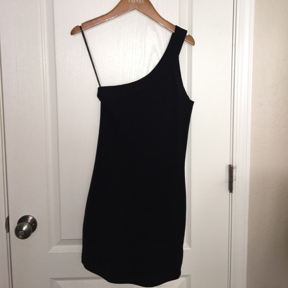 Black one shoulder mini bodycon dress. Perfect for nights out