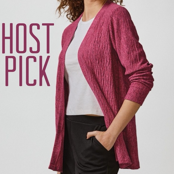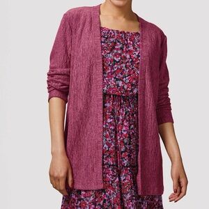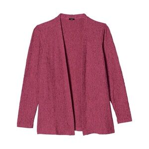 Textured Open Front Cardigan Muted magenta cardigan in a soft, textured knit features an open front and long sleeves. Size: XL Materials: 59% Cotton, 38% Polyester, 3% Spandex New in bag