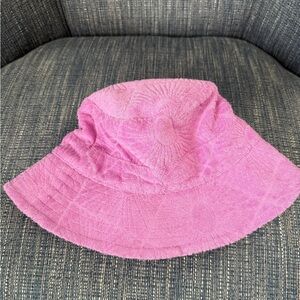 Stylish pink bucket hat with a textured design. Perfect for sun and shade!