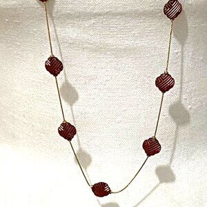 Textured Red Glass Accents Long Gold Chain Necklace 42" Boho Career Preppy