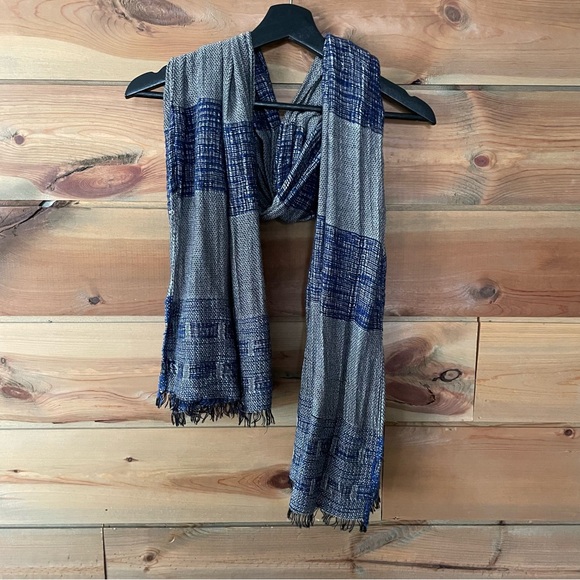 - blue, gray, and black scarf