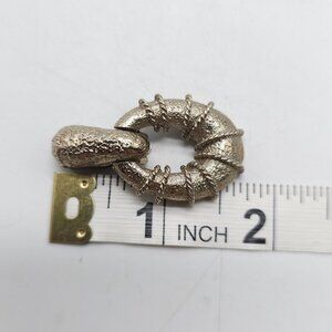 Textured Silver Tone Clip On Door Knocker Earrings Ribbed Oval Design