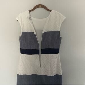 Textured Striped Sheath Dress Sleeveless by Sandra Darren Size 8 in excellent condition. Zips in the back. Lace detail, bodice is lined. Polyester and spandex blend. Please see measurement photos for best fit. Get the best deals when you bundle items together. I’ll respond to any offer you send me. 0181-2405