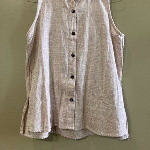 Womens medium cotton tank top, with textured white and tan material and brown buttons. There is a slight slit on each side, it is in perfect condition never worn.