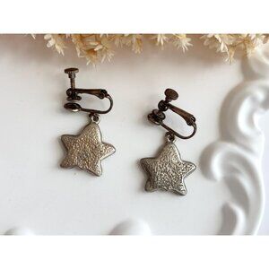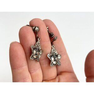 Lovely pair of silver toned pewter star shaped earrings. Features a tree spirit with a screw back enclosure. Gorgeous pair. Lightweight.