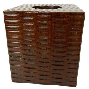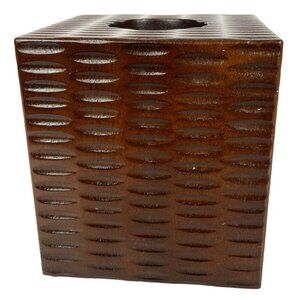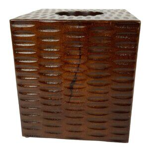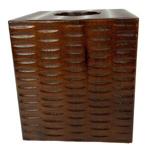 Textured Wood Tissue Box Cover Brown Square Modern Boho Bathroom Decor