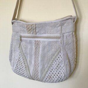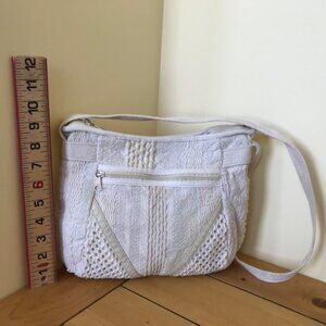 Textured Woven Fabric Purse Shoulder Bag Vintage 90s Neutral Crochet 9x11