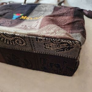 Textured really large tote bag with Embroidery on it off a rose and the word Mexico, two handles, zippered closure, attached coin purse, interior pocket