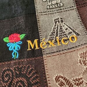 Textured Zippered Closure Large Route Tote Bag Embroidered "Mexico"