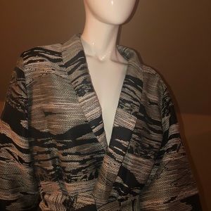 Textured forest green/gold/black/tan kimono style jacket with a tie belt knee length. Not a negotiable price. Price is set thank you 🤗