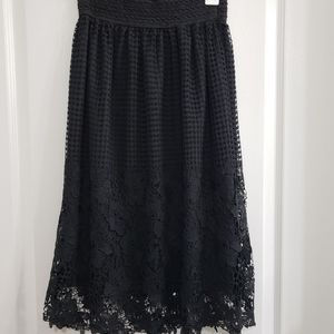 This flowy textured skirt has a stretchy waist band and is longer than knee length. It's beautiful