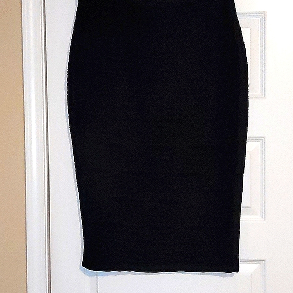 Black midi pencil skirt. Never worn. New without tags. Textured. Elastic waist. Comes below the knees. Comes from smoke-free and pet-free home!!!