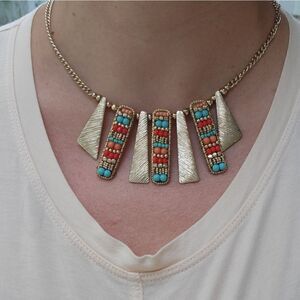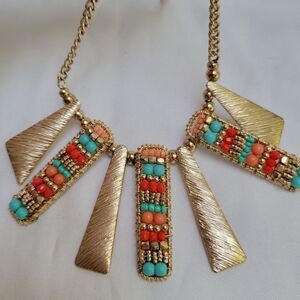 in very good used condition. gold tone metal. not sure of composition. multicolored stones.