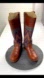 Used in excellent condition Teysha leather riding boots with Aztec textile accent. Handcrafted in Guatemala Art of the Americas. Textile and leather upper and leather sole.