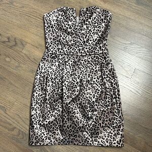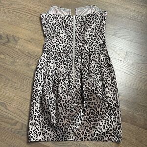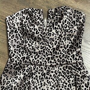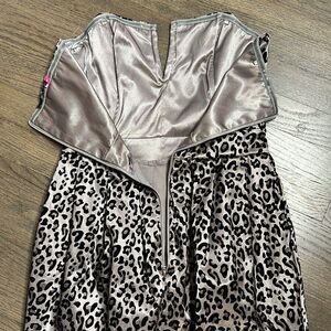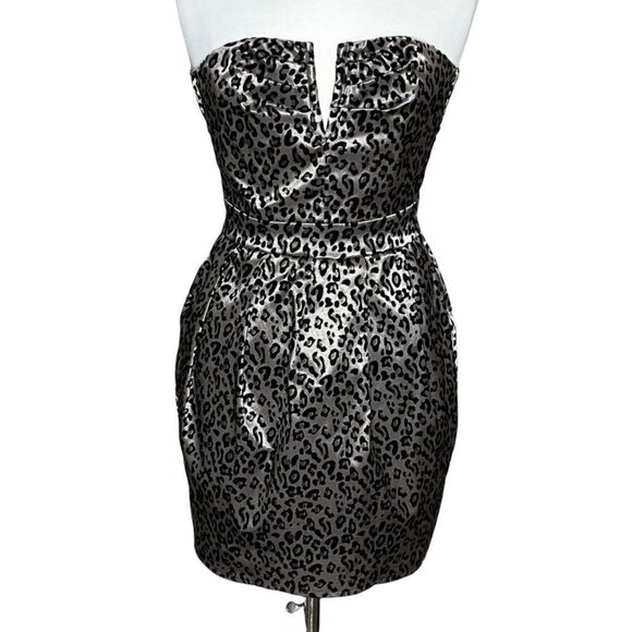 Silver Gray w/ Black Flocked Velvet Leopard Cheetah Animal Print Stretch Cotton Blend Strapless Mini Dress TFNC London