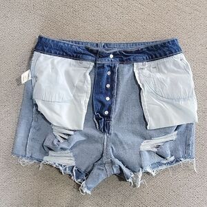 Tgla Distressed Destroyed High Rise Button Fly Jean Denim Shorts - Size 27