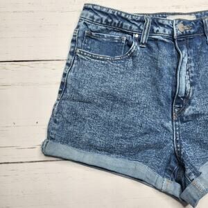 These jean shorts have a retro acid wash and fixed rolled hems.