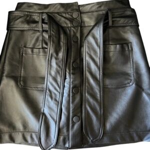 Tgla Womens Vegan Leather Snap Front Mini Skirt with Pockets and Tie Belt S NWOT