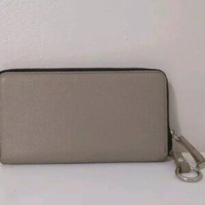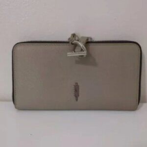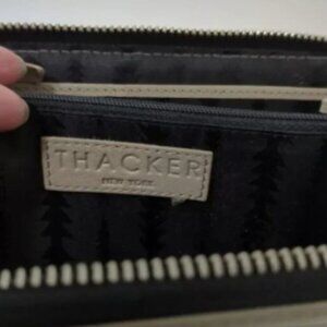 Thacker New York Camila Leather Wallet, Taupe 2-Gusset Zip Around, EUC